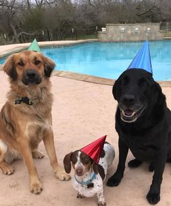 PUPDATE! The brown dog on the left is Dude. He was set to be euthanized in Stockdale months ago, but WCNKAS was able to save him thanks to an adopter. Dude is now enjoying the life every dog should have. This photo is Dude with his adoptive family celebrating the doxie’s birthday (red hat). Happy life and happy tails!